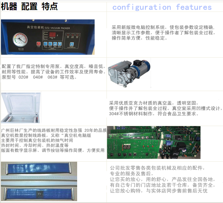 本公司擁有雄厚的技術(shù)力量,生產(chǎn)產(chǎn)品多領(lǐng)域,在真空包裝機(jī)規(guī)模最大品種最多的生產(chǎn)商。DZ系列真空機(jī)選用國內(nèi)外知名廠家,如南通、上海、德國、日本等真空泵和電器元件的不同配置。機(jī)體全不銹鋼全封閉、軸流散熱形式、耐惡劣環(huán)境長(zhǎng)時(shí)間連續(xù)使用具有高穩(wěn)定性。是目前國內(nèi)領(lǐng)先機(jī)型,可替代進(jìn)口機(jī)型。